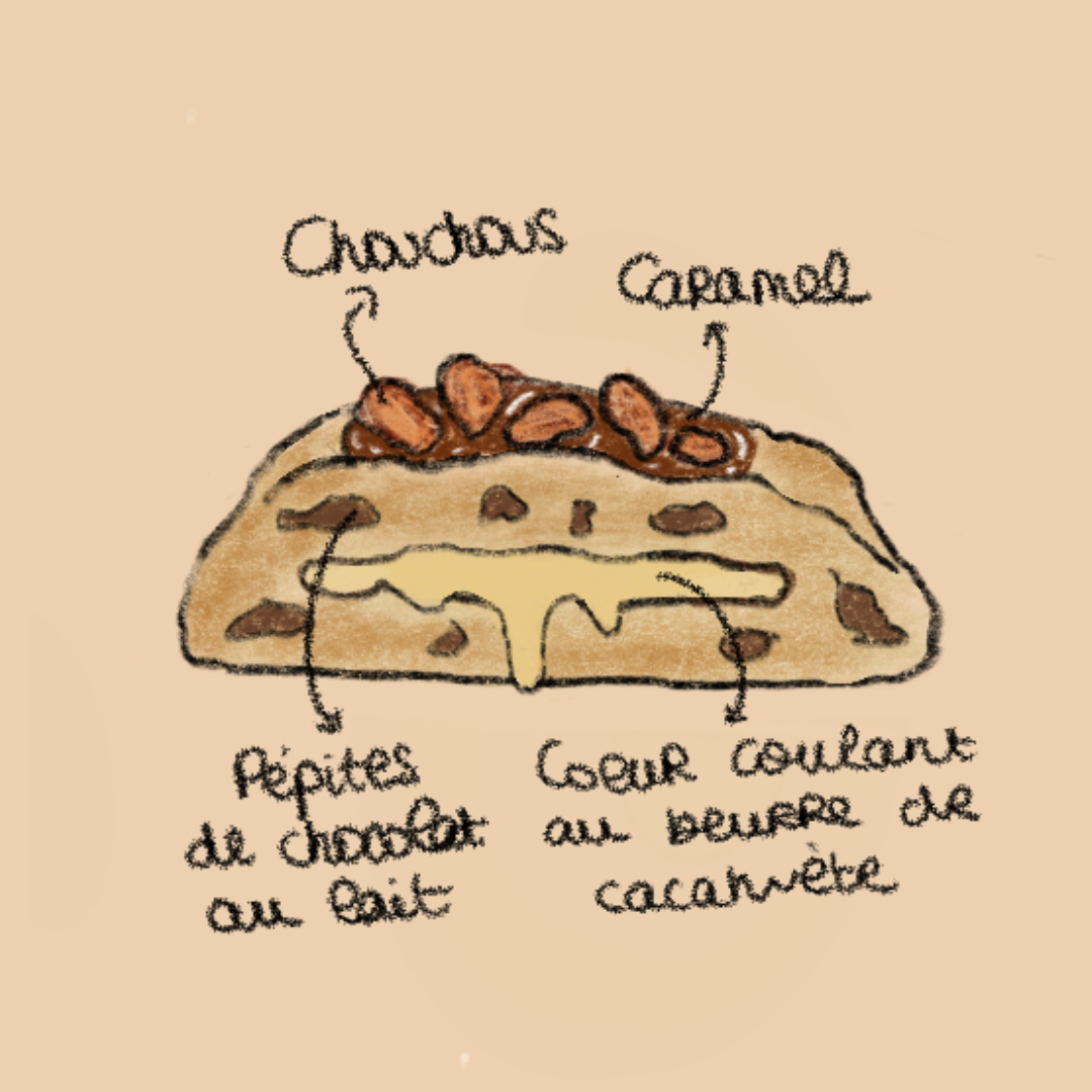 Un cœur fondant au peanut butter, des pépites de chocolat au lait, du caramel et des cacahuètes caramélisées… le tout relevé d’une touche de fleur de sel. Moelleux, croquant, sucré-salé : un vrai plaisir addictif.