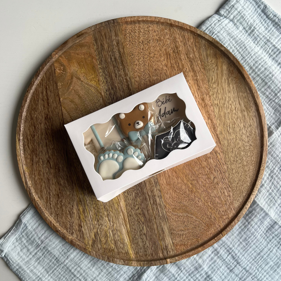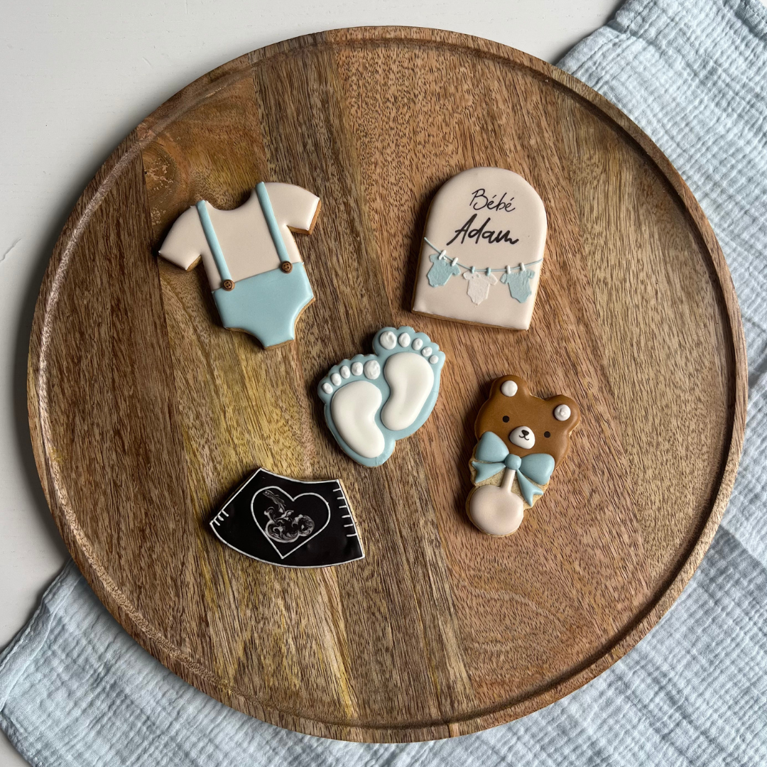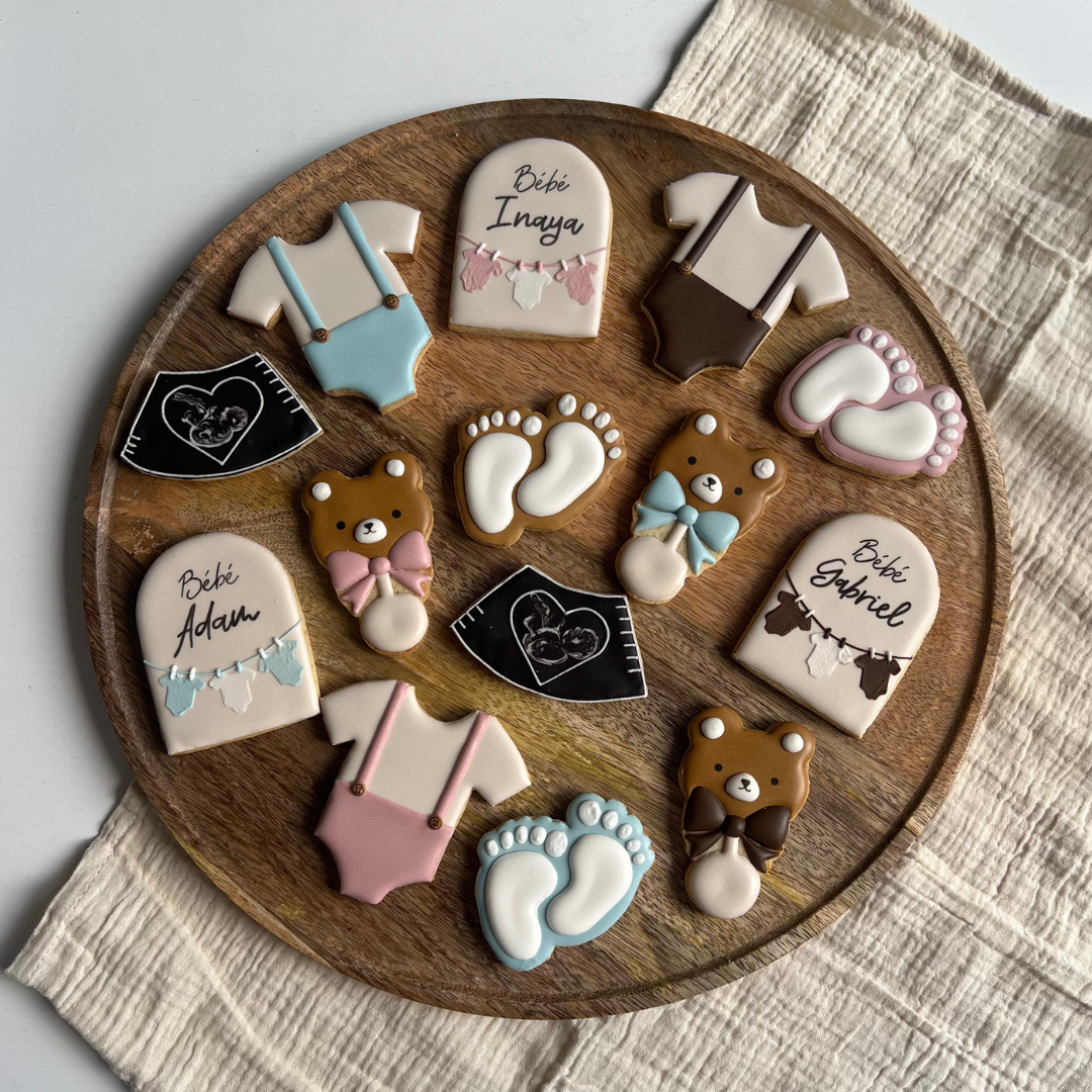 Des sablés faits main, aux couleurs et prénom personnalisables, pour annoncer une naissance avec douceur ou décorer vos événements.